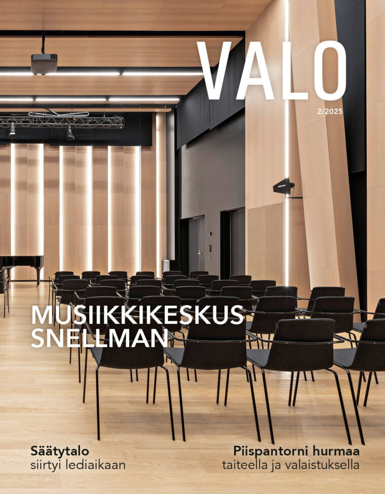 VALO 2/2025 -lehdessä tutustutaan vanhaa ja uutta yhdistävään tunnelmalliseen Musiikkikeskus Snellmaniin, peruskorjattuun Säätytaloon sekä Piispantornin toimitiloihin, joissa taide ja valaistus yhdistyvät uniikilla tavalla. Lisäksi lehdessä on raportti CIE:n välikausikokouksesta, 10 inspiroivaa leikkipaikkojen valaistusta sekä paljon muuta.